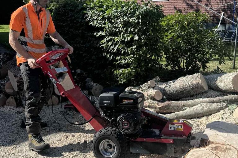 Med professionell stubbfräsning tar vi effektivt bort stubbar i din trädgård genom att fräsa ner den under marknivå.