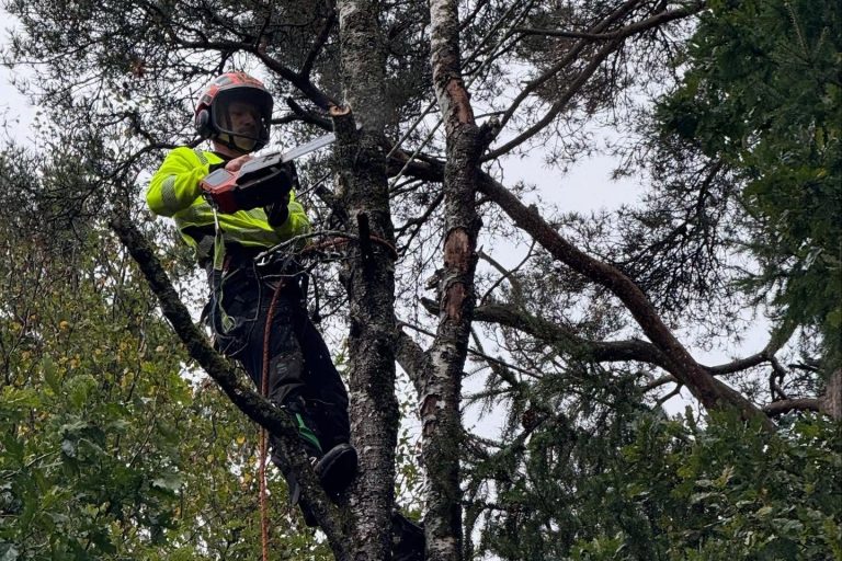 Genom sektionsfällning och klättring kan vi ta ner träd kontrollerat även i svåra lägen, utan att skada omgivningen. Vi planerar varje uppdrag noggrant och arbetar alltid med fokus på trygghet för både människor, byggnader och natur.